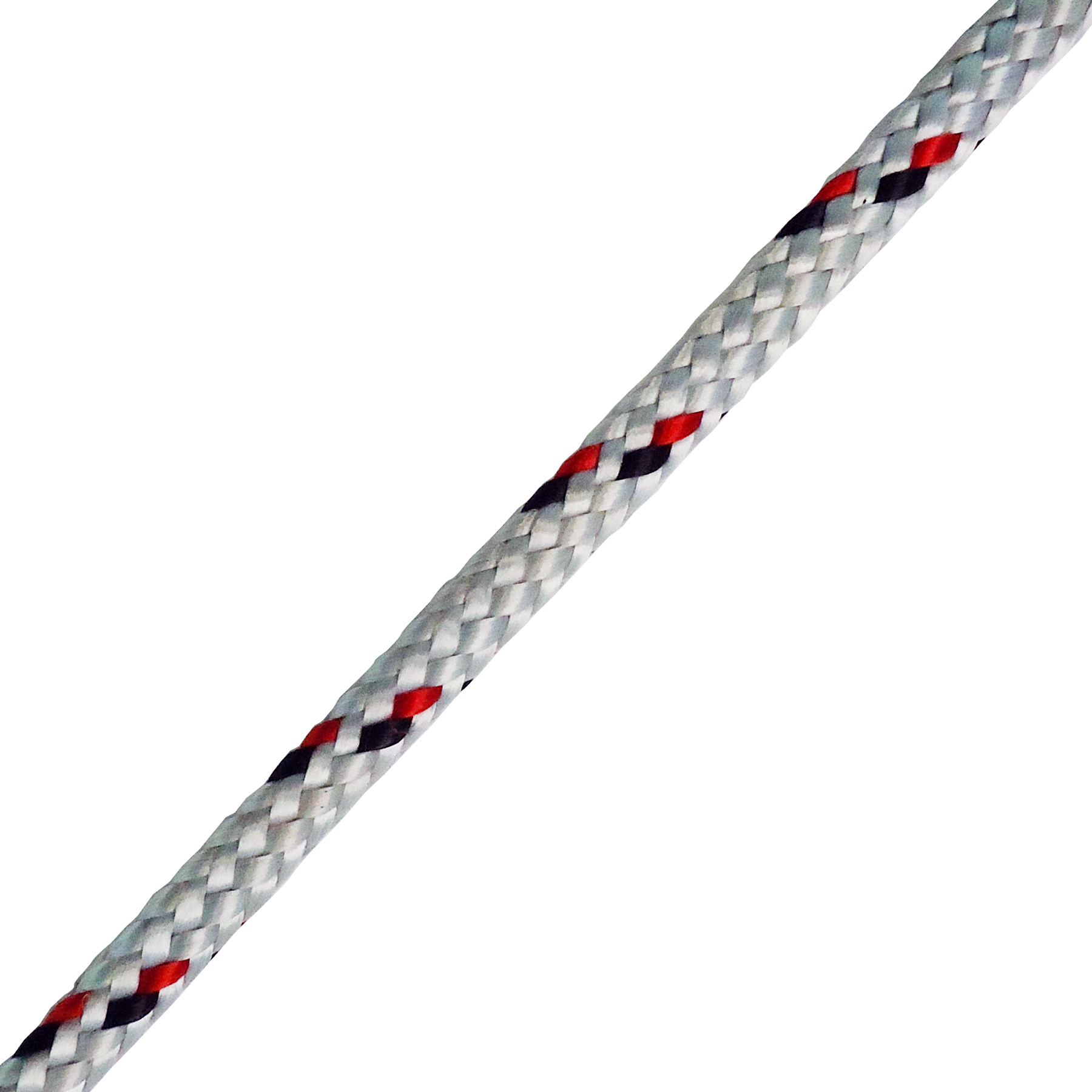 White multifilament rope reel with blue stripes, with the following characteristics: