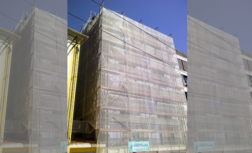 A rede para andaimes raschel é recomendada para o revestimento de andaimes, para proteção dos trabalhadores e contra projecções de materiais, tintas e poeiras.